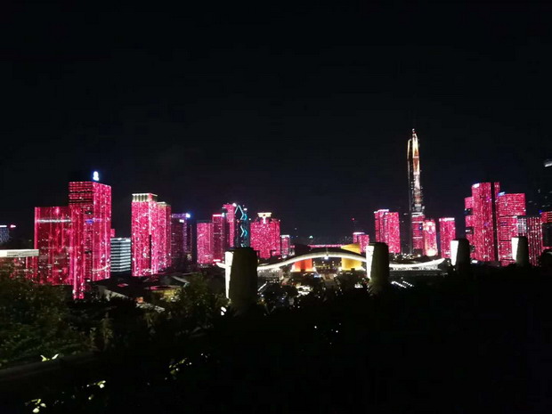 這臺(tái)別開生面的晚會(huì),主舞臺(tái)設(shè)在市民中心廣場(chǎng),舞臺(tái)后方呈現(xiàn)著深圳市精心打造的福田中心區(qū)43座樓宇燈光秀,五彩斑斕、綺麗多姿的深圳城市新夜景,與晚會(huì)現(xiàn)場(chǎng)舞臺(tái)融為一體,為市民和廣大觀眾呈現(xiàn)出一個(gè)迷人的“深圳之夜”。