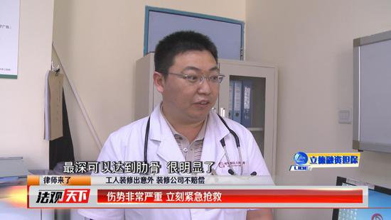 龍華區(qū)人民醫(yī)院表示,朱先生剛被送來的時候情況十分危急,胸前有一個很大的傷口,整個肌肉都裂開了,大概有20至30公分的長度。而且血流不止,隨時會危及生命。他立刻讓周圍的工作人員開通綠色搶救通道,第一時間將朱先生送往手術室進行搶救。經(jīng)過搶救,朱先生已經(jīng)脫離了生命危險,傷口也已經(jīng)愈合,并在恢復當中。但是縫合后的傷口看上去仍然觸目驚心。如今三個多月過去了,朱先生的身體仍然在恢復當中,是否會留有后遺癥仍是個未知數(shù)?!斗ㄓ^天下》嘉賓律師雷英表示,只要朱先生是在店鋪內施工時受傷,那么店主和包工頭都應該承擔相應的賠償責任。