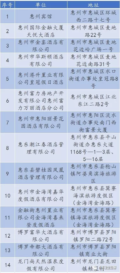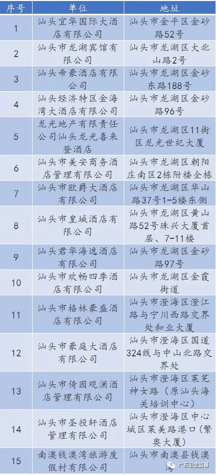 廣東省A級(jí)住宿單位名單