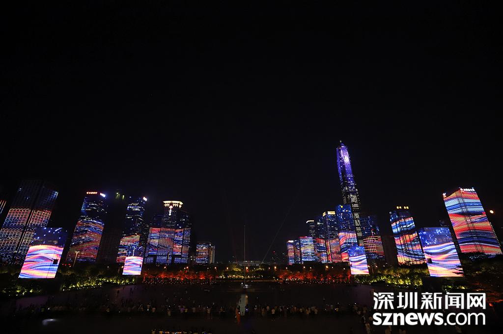 深圳新聞網(wǎng)9月29日訊(記者 鐘鴻冰 楊浩瀚 劉慶康 涂勝 實習生 張林羽 通訊員 崔嵩)為慶祝改革開放40周年,9月28日,“輝煌新時代”深圳中心區(qū)燈光表演正式首秀?!拜x煌新時代”燈光表演包括山海之城、改革之窗、創(chuàng)新之都、和諧之境四大篇章。在市民中心周圍,以平安大廈為地標,通過中國古典風及波普藝術等不同表現(xiàn)手法和智能管控技術,實現(xiàn)43棟樓宇燈光聯(lián)動,點亮流光溢彩的中心區(qū)璀璨夜景。