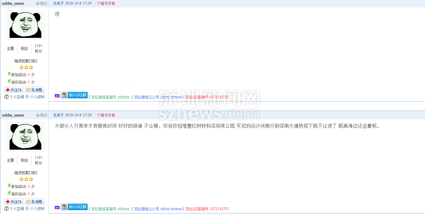 深圳新聞網(wǎng)10月12日訊(記者施冰冰)國慶假期剛過,就有網(wǎng)友在深圳論壇上反映“號稱深圳最美的騎行路段歸深圳灣公園管,實行周末不準(zhǔn)入原則,‘一刀切’管理影響了市民周末鍛煉及親子活動的體驗”。該網(wǎng)友質(zhì)問“深圳灣公園到底為誰建?”(查看帖文)