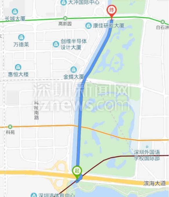 由于周六日深圳灣公園不讓進,而從蛇口新街到濱海沙河西立交橋這段路在公園內(nèi),該網(wǎng)友只能改從望海路騎至濱海沙河西立交,當(dāng)準(zhǔn)備由濱海沙河西立交騎行到深南沙河西立交時,又被告知這條騎行道同樣在深圳灣公園管轄范圍內(nèi),不準(zhǔn)進。最后,網(wǎng)友只能帶著孩子沿沙河西路極其狹窄且危險的小道騎行到深南大道,再接著騎到深南沙河西,最終才到達大沙河公園(大沙河?xùn)|側(cè)的沿岸)。