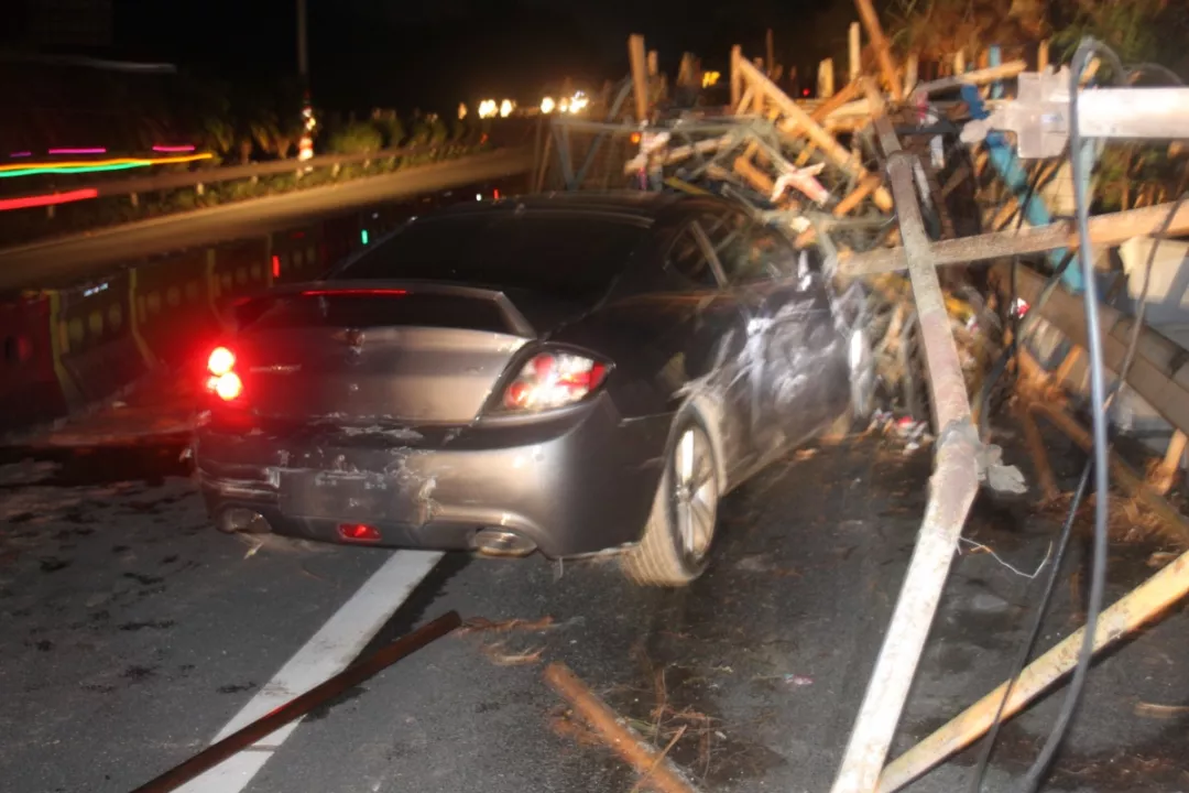 執(zhí)勤民警接報后立即前往龍崗區(qū)長深高速3655KM往鹽田方向路段(高速路)處理事故,現(xiàn)場發(fā)現(xiàn)肇事粵B牌小車駛進(jìn)了高速公路右邊的施工區(qū)域撞上了鐵管,氣囊爆開,擋風(fēng)玻璃被鐵管直接刺穿,車輛損毀嚴(yán)重。
