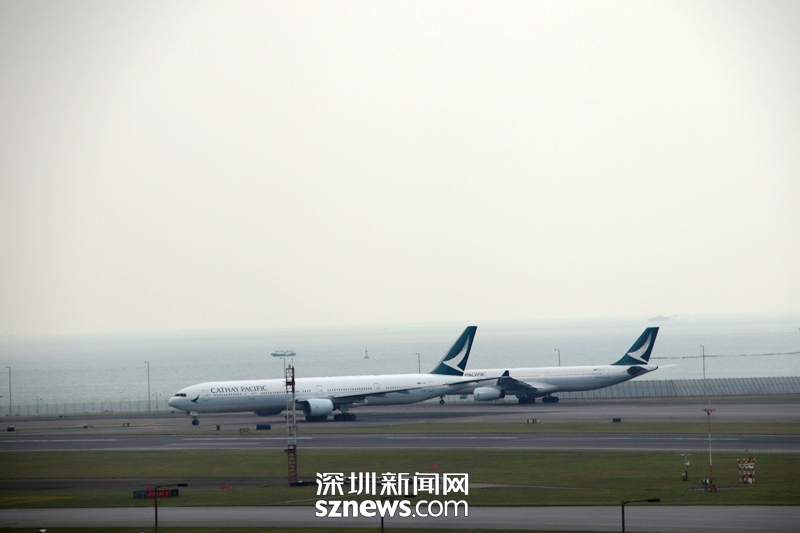 打開右手邊車窗,就可以看到香港機(jī)場的停機(jī)坪
