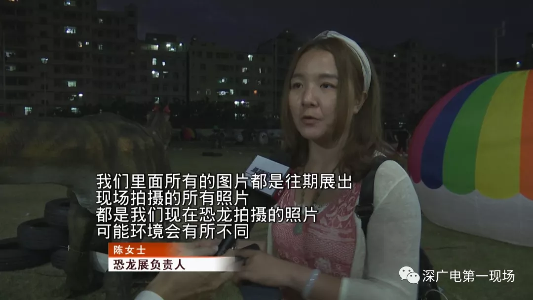 恐龍展負(fù)責(zé)人陳小姐說(shuō):“我們里面所有的圖片都是往期展出,可能環(huán)境會(huì)有所不同,因?yàn)橐郧拔覀冇性谏鷳B(tài)園公園、景區(qū)里面辦,是有一些樹(shù)木為背景的,因?yàn)槲覀冞@里只有一大片草地,可能看起來(lái)的話(huà),造景不太美觀?!?/p>