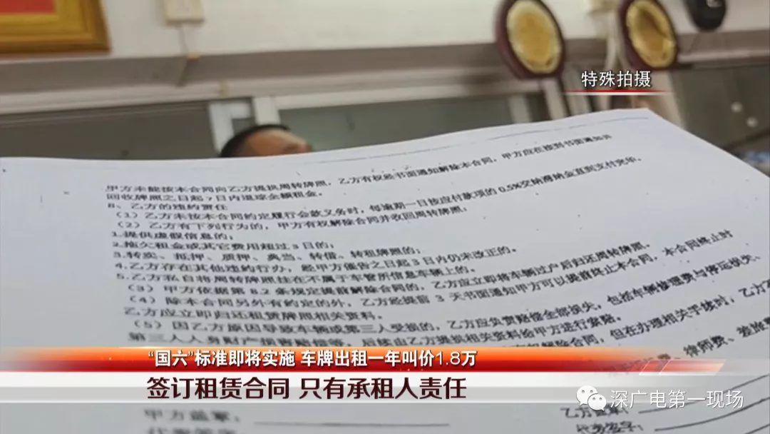 車牌、指標的錯位市場,衍生了車牌出租的利益。二手車行在這過程中處于主導(dǎo)的地位,他們規(guī)定在車牌租用之前,承租人需要簽訂一份租賃合同,按理說合同應(yīng)該劃分雙方的責任,然而記者發(fā)現(xiàn),合同明確指出了租牌者違約應(yīng)當承擔的責任,條款多達10多項。