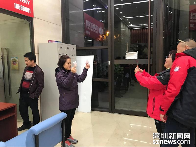 觀摩團成員現(xiàn)場購買彩票并合影留念