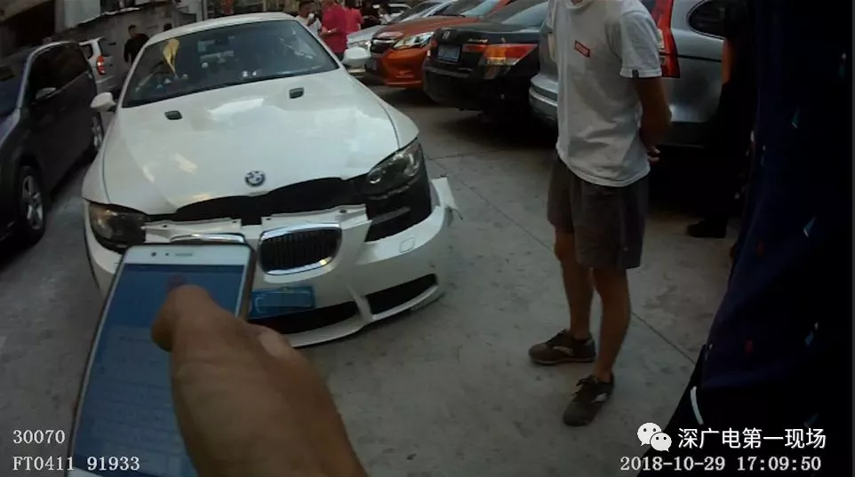 10月29日下午5點(diǎn)23分左右,福田交警接到報(bào)警,在梅林華海公寓34號(hào)停車路段,有一起四車被連撞的交通事故,而肇事的小車司機(jī)卻逃離了現(xiàn)場!接警后執(zhí)勤民警很快趕到現(xiàn)場。