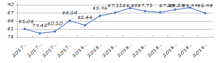 圖8坪山區(qū)城市交通文明指數(shù)走勢圖(計(jì)量單位:分)