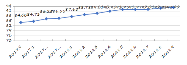 2018年9月份深圳市及各區(qū)(新區(qū))城市交通文明指數(shù)