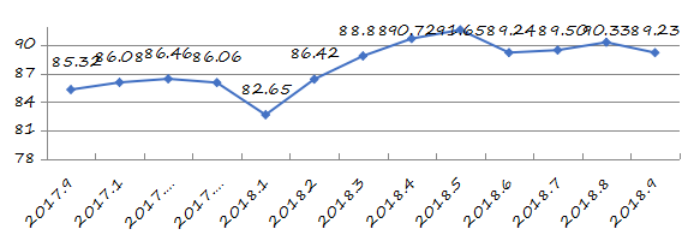 國家統(tǒng)計(jì)局深圳調(diào)查隊(duì)編制9月份深圳市城市交通文明指數(shù)為87.02分,比上月增加0.05分,比上年同期增加2.06分;深圳市城市交通文明進(jìn)步指數(shù)為-0.05 % (見圖1)。