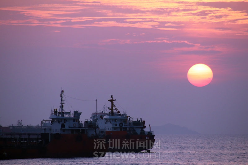 外伶仃海域,夕陽下色彩層次豐富(攝于2018年11月21日傍晚)