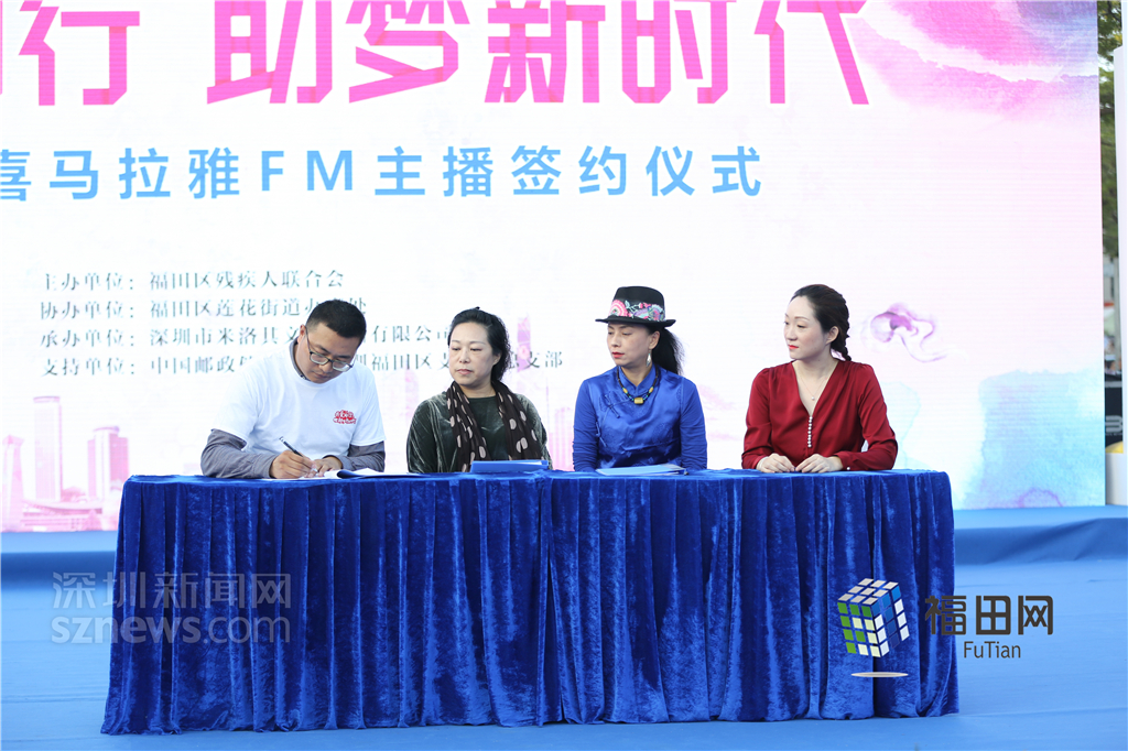 喜馬拉雅FM相關負責人現(xiàn)場與福田殘疾人網(wǎng)絡主播進行簽約。