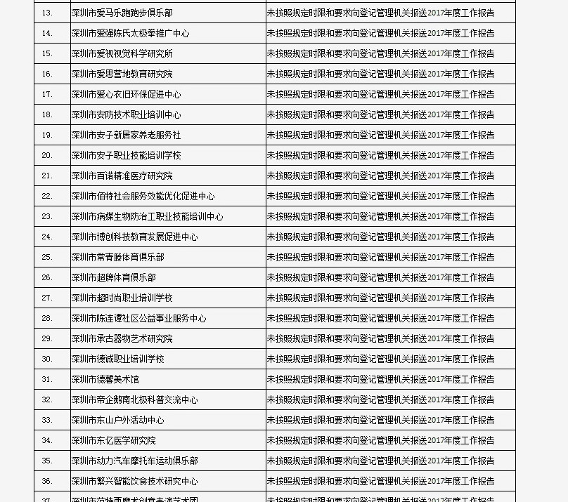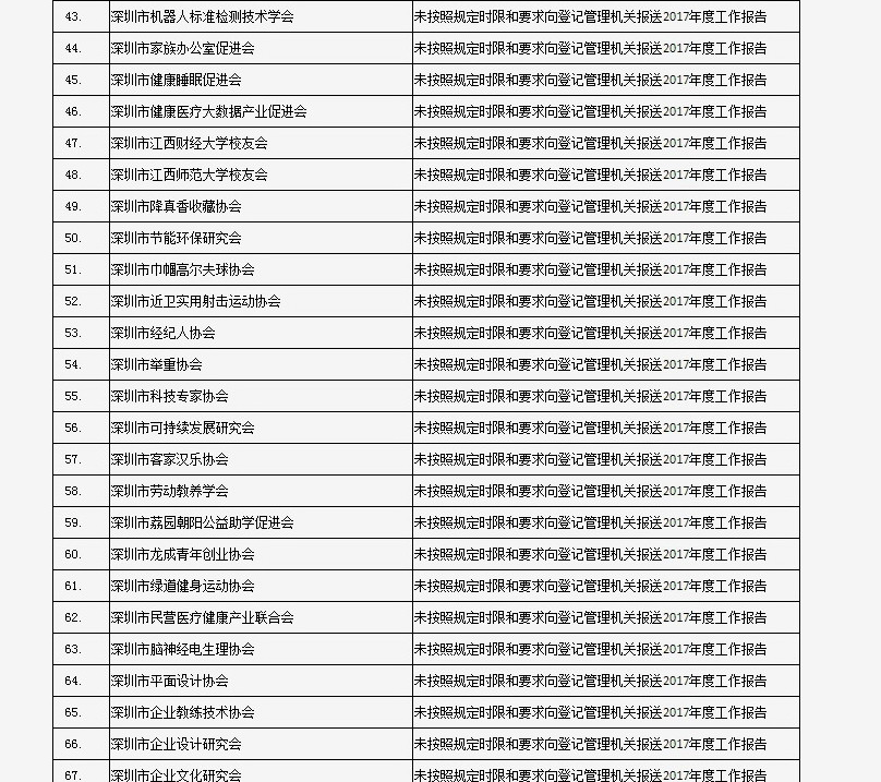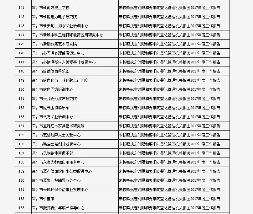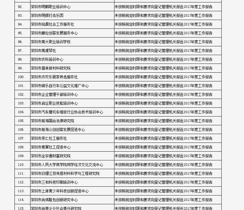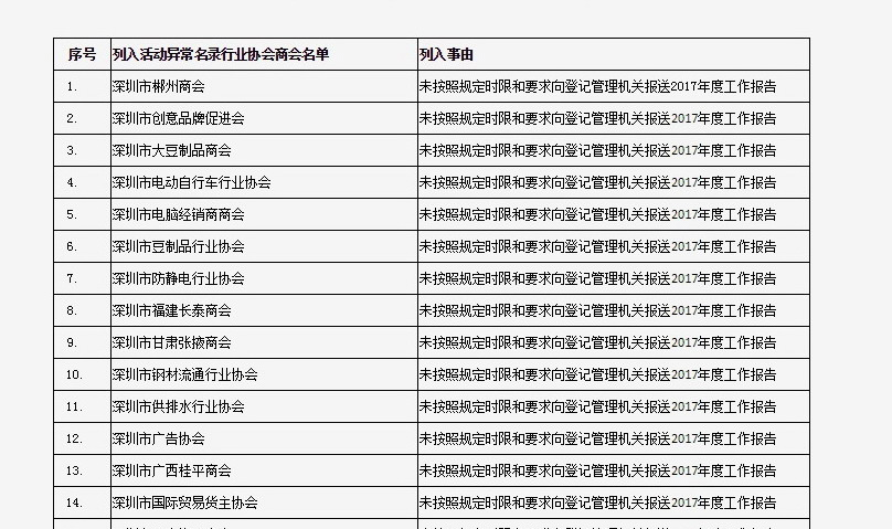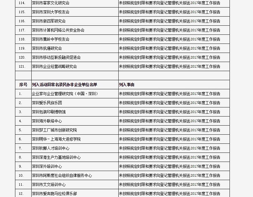 列入社會(huì)組織活動(dòng)異常名錄 來(lái)源:深圳市民政局