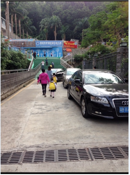 據(jù)該網(wǎng)友反映,通往景億幼兒園大門的道路只有上述提及的那兩條車道,一條被用來(lái)停車,而另一條則滿是排隊(duì)從景億山莊車庫(kù)轉(zhuǎn)彎出來(lái)的機(jī)動(dòng)車?!岸紱](méi)有路可以走了”該網(wǎng)友在帖文中表示,小孩和來(lái)接送的家長(zhǎng)只能從機(jī)動(dòng)車之間穿過(guò),太不安全了。隨后,該網(wǎng)友還質(zhì)疑:事關(guān)3-5歲幼兒生命安全,為什么沒(méi)人管?