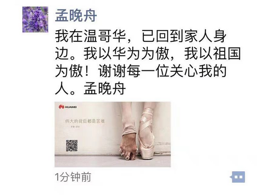 12月12日下午,孟晚舟保釋后首次發(fā)聲:為華為驕傲,為祖國(guó)驕傲