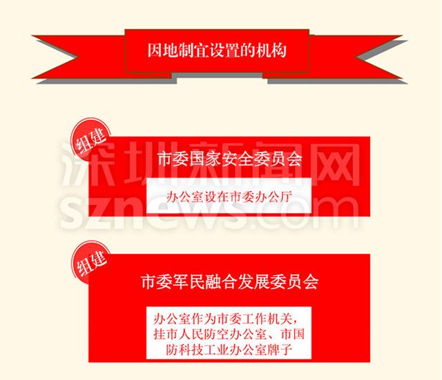 一是突出完善堅(jiān)持和加強(qiáng)黨的全面領(lǐng)導(dǎo)的體制機(jī)制。這次改革,將完善堅(jiān)持黨的全面領(lǐng)導(dǎo)的制度作為首要任務(wù),健全黨委對(duì)重大工作的領(lǐng)導(dǎo)體制機(jī)制,強(qiáng)化黨的組織在同級(jí)組織中的領(lǐng)導(dǎo)地位,加強(qiáng)黨委職能部門對(duì)本系統(tǒng)本領(lǐng)域工作統(tǒng)籌,著力從制度安排上發(fā)揮黨的領(lǐng)導(dǎo)這個(gè)最大的體制優(yōu)勢(shì),形成黨總攬全局、協(xié)調(diào)各方的工作格局,確保黨始終成為經(jīng)濟(jì)特區(qū)事業(yè)的堅(jiān)強(qiáng)領(lǐng)導(dǎo)核心。如:組建或優(yōu)化調(diào)整相關(guān)議事協(xié)調(diào)機(jī)構(gòu),加強(qiáng)和優(yōu)化市委對(duì)全面深化改革、全面依法治市、國家安全、網(wǎng)絡(luò)安全和信息化、軍民融合發(fā)展、推進(jìn)粵港澳大灣區(qū)建設(shè)以及審計(jì)、教育等工作的領(lǐng)導(dǎo),確保市委決策部署令行禁止、工作高效,確保黨的領(lǐng)導(dǎo)更加堅(jiān)強(qiáng)有力;更好發(fā)揮黨委職能部門的統(tǒng)一歸口協(xié)調(diào)管理職能,按照突出核心職能、整合相近職能、充實(shí)協(xié)調(diào)職能的原則,調(diào)整黨政機(jī)關(guān)機(jī)構(gòu)設(shè)置和職能配置,加強(qiáng)黨對(duì)機(jī)構(gòu)編制資源、公務(wù)員隊(duì)伍、宣傳陣地等的領(lǐng)導(dǎo)和管理;統(tǒng)籌黨政機(jī)構(gòu)設(shè)置,整合優(yōu)化力量和資源,發(fā)揮綜合效益,實(shí)現(xiàn)增強(qiáng)黨的領(lǐng)導(dǎo)力和增強(qiáng)政府執(zhí)行力的有機(jī)統(tǒng)一。