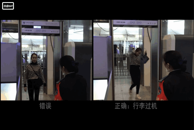 接受安全檢查時,旅客攜帶的行李(大件或小件物品)均要過機檢查,摘掉帽子,配合工作人員。攜帶水、飲料等物品,需在工作人員面前喝一口。