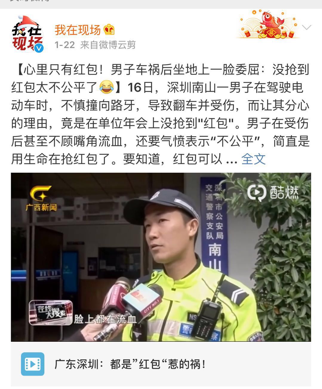 最近,深圳有個男子就因沒搶到紅包,心里憋屈,在騎車時“分心”摔倒。
