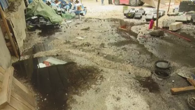 執(zhí)法人員進入時,老板和工人剛逃跑,只剩1名看門男子。而帶有強腐蝕性的電池廢液,無任何處理滿地橫流,現(xiàn)場地表和圍擋的金屬,都已被嚴(yán)重腐蝕。