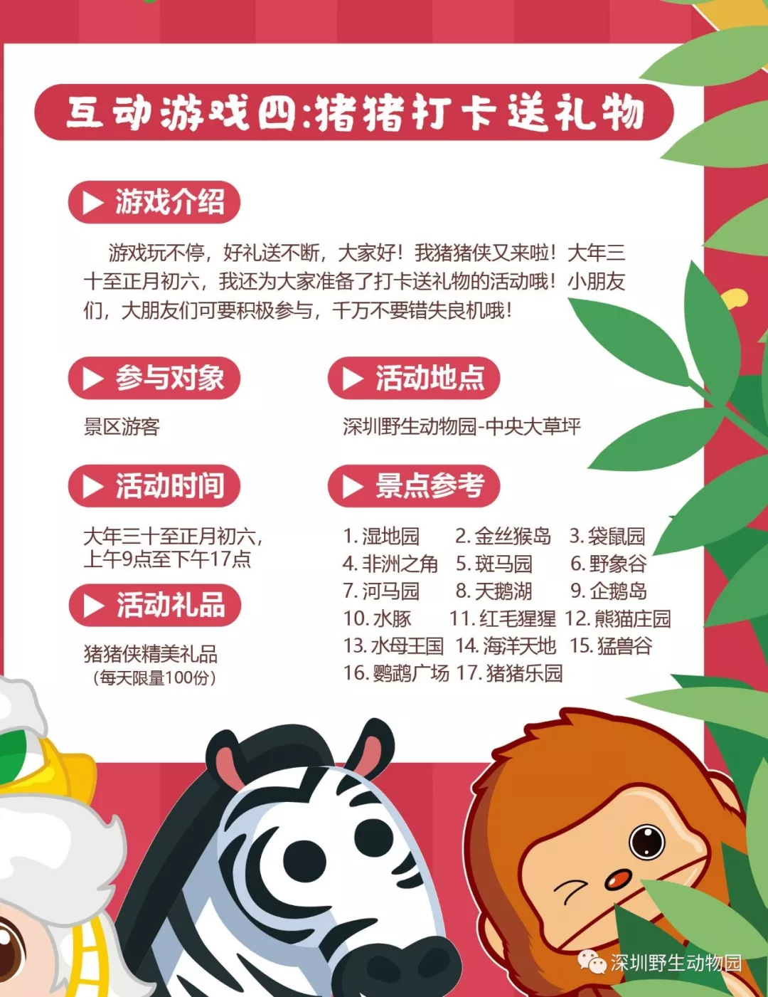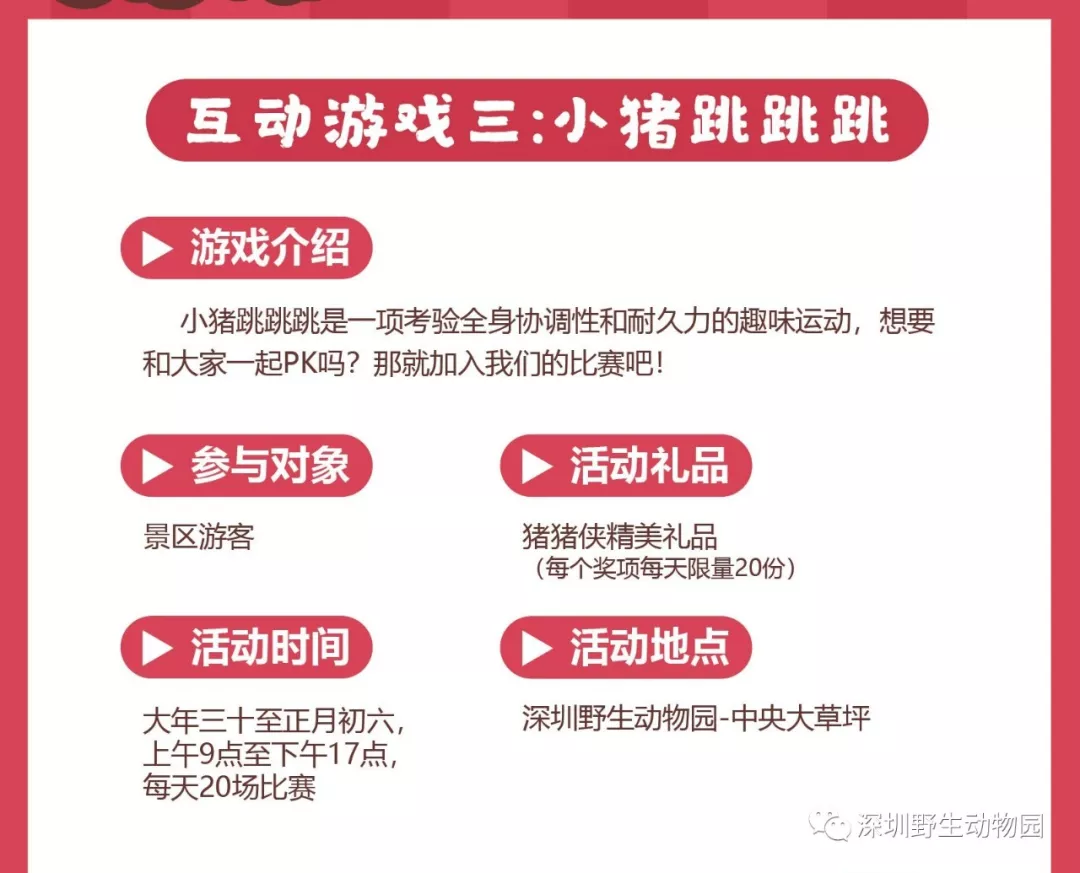深圳野生動(dòng)物園攜手豬豬俠、攜程網(wǎng)重磅推出“豬豬俠歡樂(lè)游園會(huì)”大型系列主題活動(dòng)。豬豬俠率領(lǐng)小伙伴們空降深圳野生動(dòng)物園,大鬧動(dòng)物王國(guó)開啟多重活動(dòng),精彩不停!