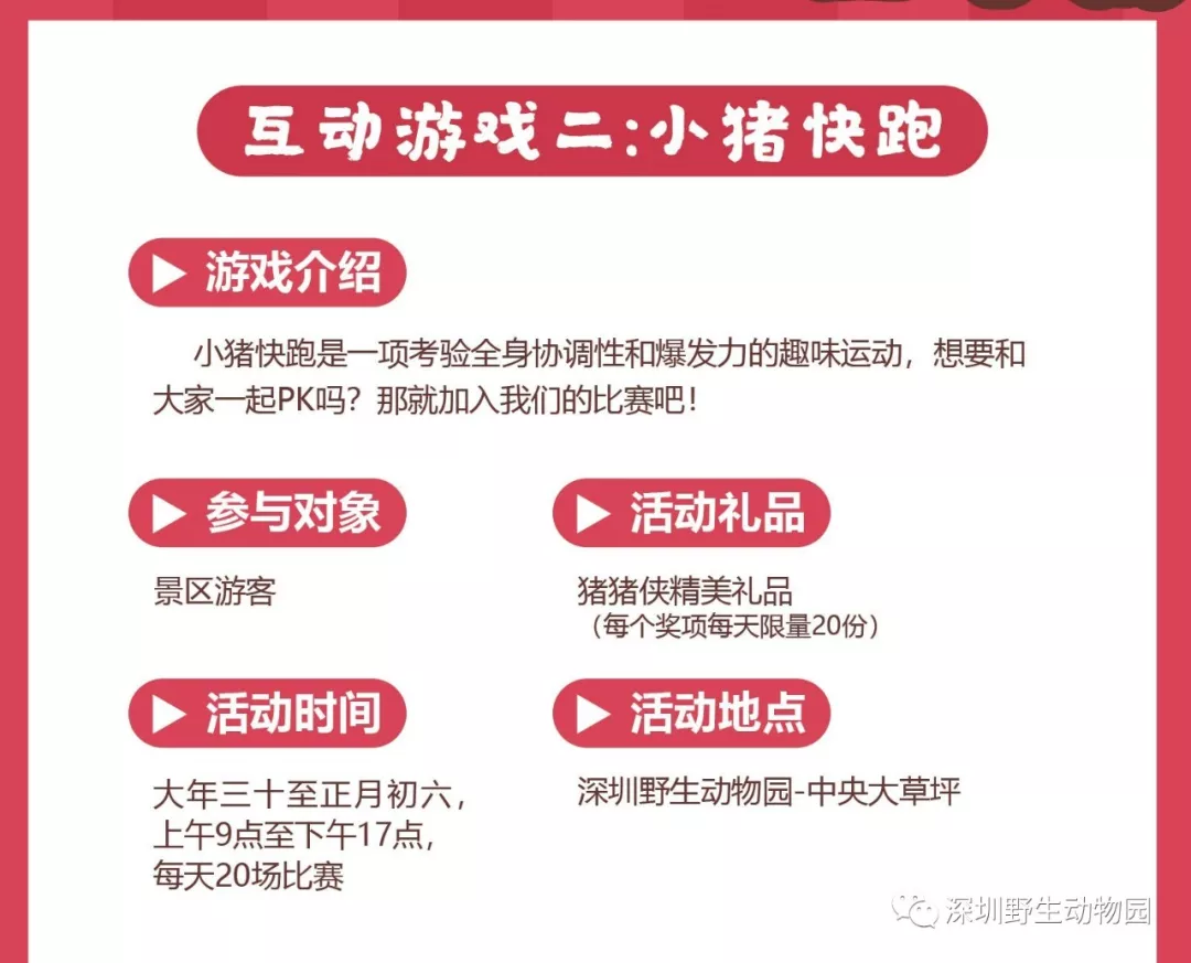 豬年新春新亮點(diǎn):豬年新生命,新伙伴隆重加入動(dòng)物王國(guó),點(diǎn)綴出新春最閃耀的色彩;別出心裁豬年豬科普展,帶你挖掘豬豬的“前世今生”;美不勝收深圳本土生物多樣性科普攝影展,換個(gè)角度了解我們身邊的動(dòng)物朋友。