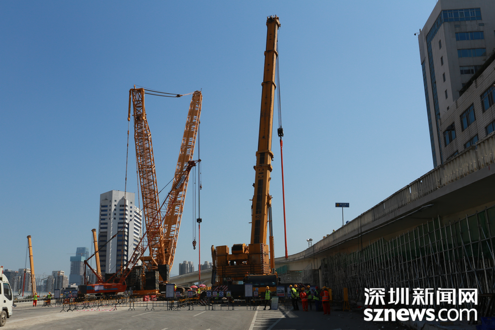 深圳新聞網(wǎng)2019年2月3日訊(記者 黃賢娟 趙穎致 黃婉婷 胡志方 林婉婷)與日漸冷清下來(lái)的街道商鋪不同,春節(jié)前夕的黃木崗立交仍是一片繁忙景象。這是2月2日傍晚,數(shù)百名身穿橙黃馬甲的工人正在忙著將立交橋切割分離。平板車(chē)、模塊車(chē)往來(lái)穿梭,將一塊塊拆卸下來(lái)的橋體陸續(xù)運(yùn)走。夕陽(yáng)西下,橙黃色工服反射出點(diǎn)點(diǎn)熒光,成為安靜的城市中獨(dú)特的點(diǎn)綴。