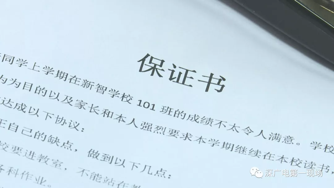 上午11點,在新智學(xué)校德育處,大約有10名家長在此等待領(lǐng)導(dǎo)簽字,他們孩子來自2年級到5年級的不同班級,情況與小權(quán)相同,都是考試成績不理想,要簽協(xié)議才能報到。