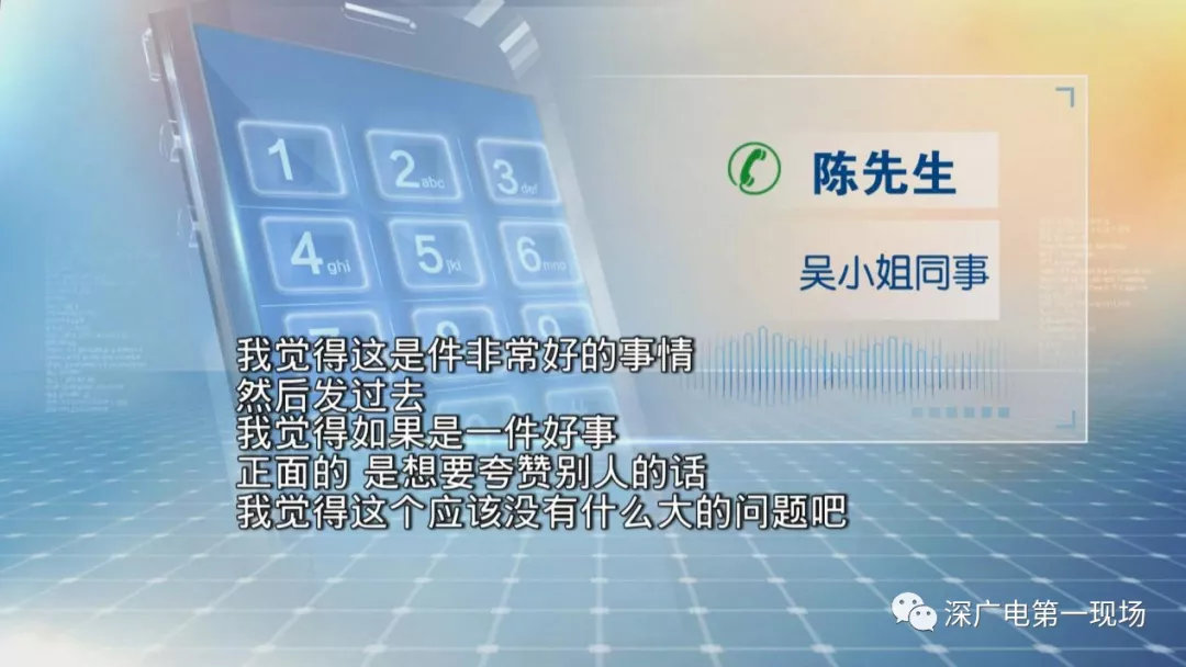 深廣電第一現(xiàn)場2019年2月19日訊 今年20多歲的吳小姐是深圳一家公司的員工。昨天晚上,吳小姐打開了公司的微信工作群,發(fā)現(xiàn)她的同事陳先生在工作群,發(fā)布了吳小姐之前參加選美比賽的相關(guān)宣傳報道,和領(lǐng)獎時候的照片,這讓吳小姐一下子驚呆了。
