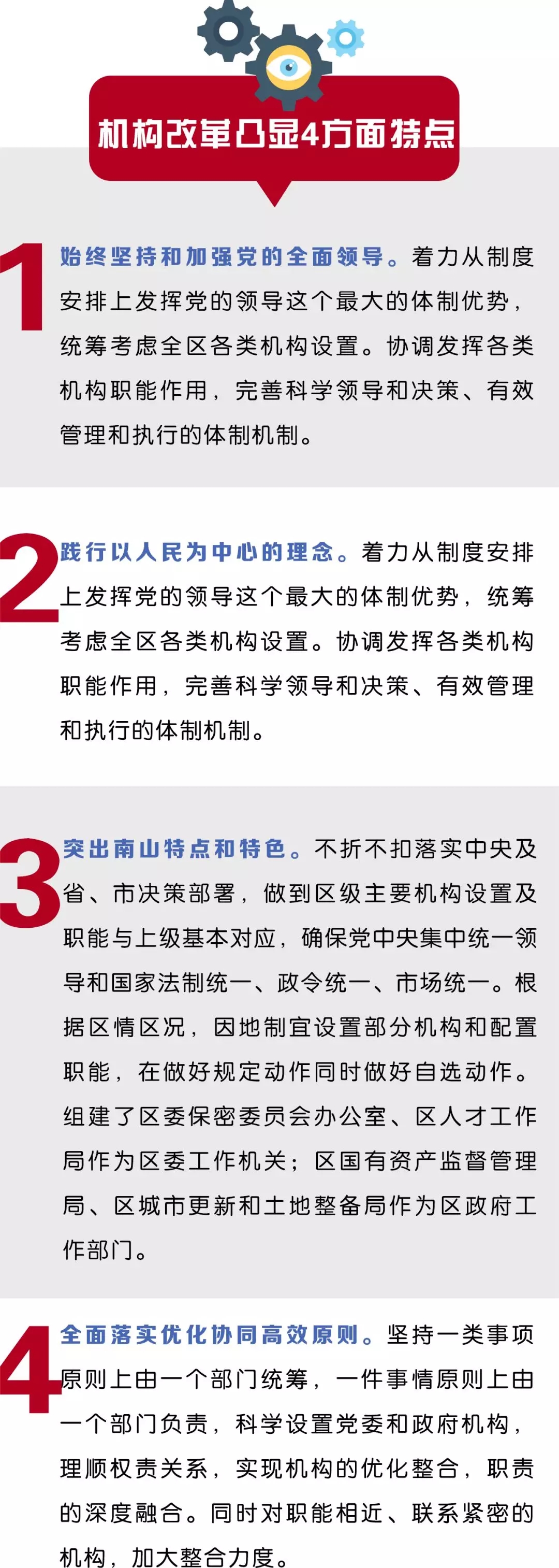 蛇口消息報(bào)2019年2月20日訊 近日,《深圳市南山區(qū)機(jī)構(gòu)改革方案》經(jīng)省委批準(zhǔn),以省委機(jī)構(gòu)編制委員會名義正式印發(fā)。2月20日,南山區(qū)委七屆八次全體會議召開,對全區(qū)深化機(jī)構(gòu)改革工作進(jìn)行動員部署,南山區(qū)機(jī)構(gòu)改革工作進(jìn)入全面實(shí)施階段。