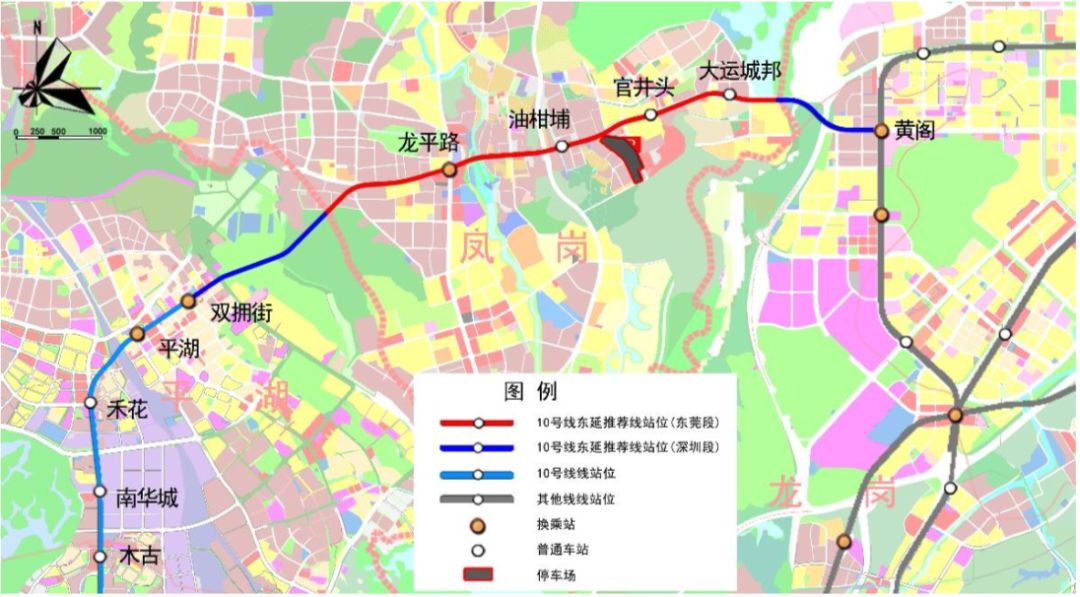 10號線東延是聯系平湖、東莞鳳崗及大運新城的普速線路,主要功能為加強龍崗中心城與平湖、坂雪崗的聯系、促進深莞一體化。東延線路由在建地鐵10號線雙擁街站后引出,出站后轉向東北方向,下穿鳳凰山國家礦山公園,之后進入東莞,東莞段內沿龍平路敷設,在東北師大益田小學北側向東南下穿武深高速、鹽龍大道進入清林路,接至在建16號線黃閣站。線路全長約9.8km,設站5座,采用地下敷設方式。