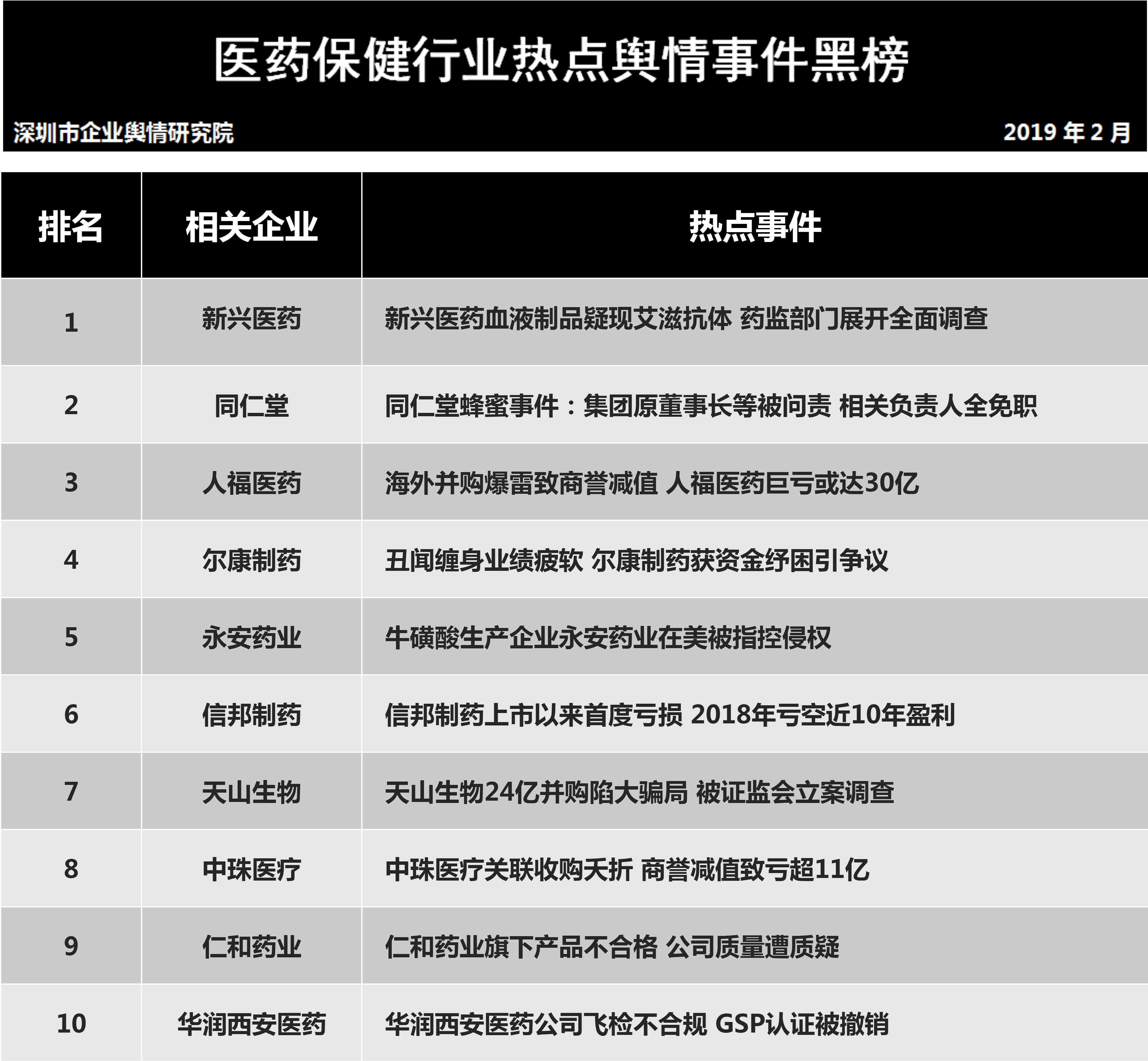 深圳新聞網(wǎng)2019年3月5日訊 (記者田志強(qiáng) 通訊員陳文光)3月5日,深圳企業(yè)輿情研究院發(fā)布第十三批企業(yè)輿情榜單。本次榜單重點(diǎn)聚焦房地產(chǎn)及醫(yī)藥保健兩個行業(yè)。醫(yī)藥保健行業(yè)輿情榜單由醫(yī)療保健行業(yè)熱點(diǎn)輿情事件排行榜(紅、黑榜)及醫(yī)藥保健行業(yè)企業(yè)公眾形象排行榜組成。