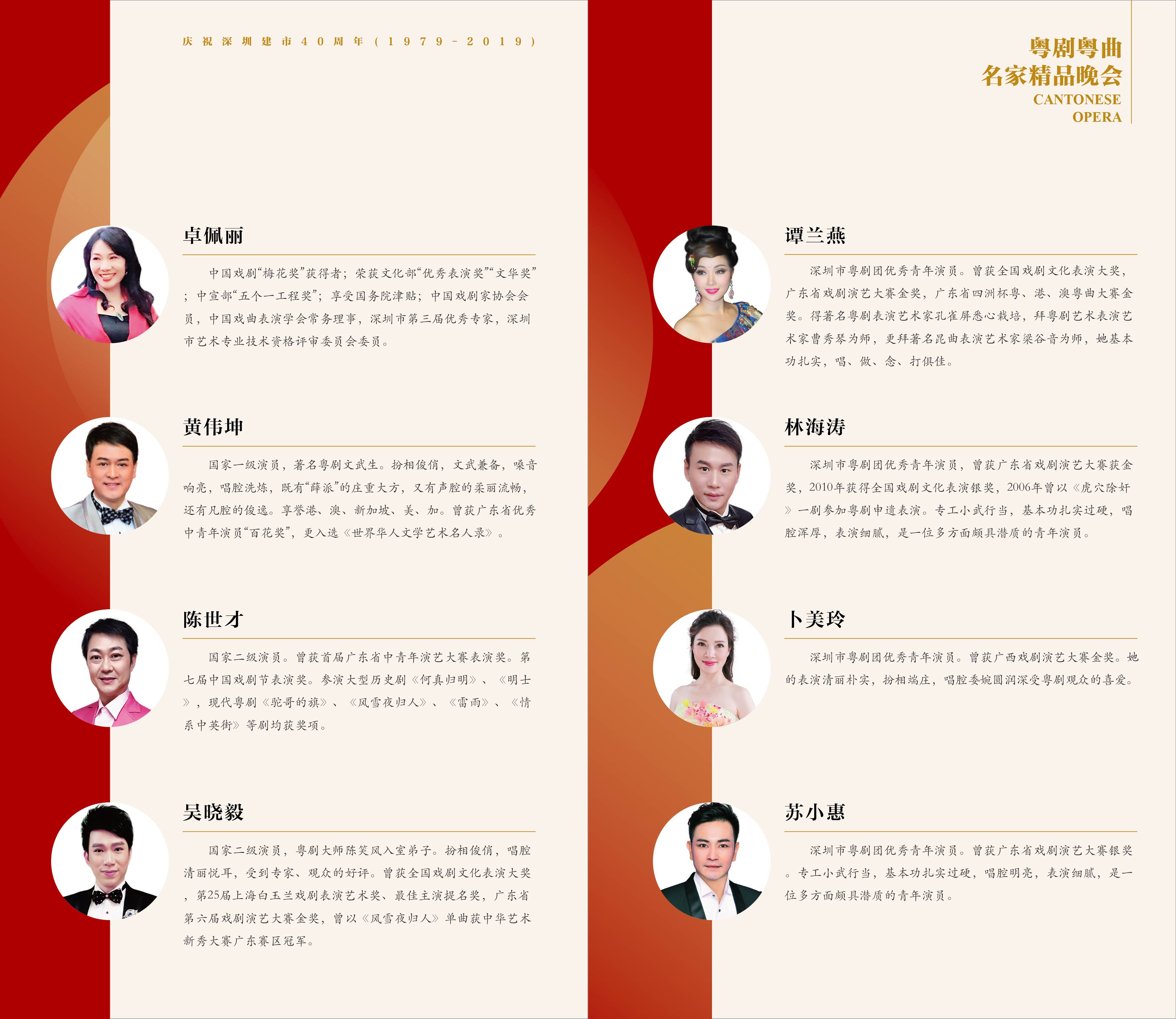 1979年3月5日,國務(wù)院批復(fù)原寶安縣改設(shè)為深圳市。從此,在中國南海邊的這片熱土上,吸引了數(shù)以千萬計來自全國乃至世界各地的開拓者和創(chuàng)業(yè)者,他們用青春和智慧雕塑著深圳這個偉大城市的年輪,經(jīng)過四十年的不斷改革開放、創(chuàng)新發(fā)展,深圳這座讓世界驚嘆和矚目的現(xiàn)代化國際性都市,拔地而起,40年,深圳粵劇團與深圳經(jīng)濟特區(qū)同呼吸、共命運,這個特區(qū)最早成立的國有專業(yè)院團,見證了深圳文化從無到有、從小到大、從大到強的歷史變遷,是深圳歷史文化的建設(shè)者、參與者。