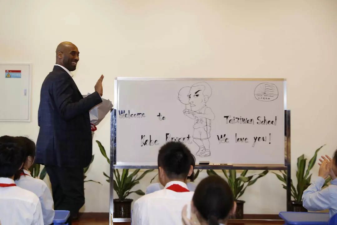 11點20分,科比在萬眾期待中出現(xiàn),滿臉笑容地走下車接受太子灣學(xué)校學(xué)生的鮮花。