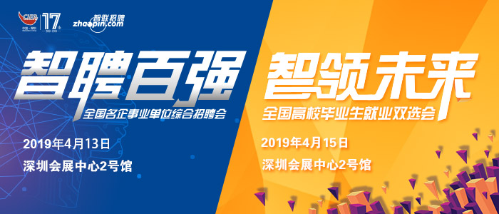 四月的深圳將迎來(lái)一波大春招,第十七屆中國(guó)國(guó)際人才交流大會(huì)將于4月14日 -15日在深圳會(huì)展中心開幕。作為大會(huì)重要組成部分,由智聯(lián)招聘執(zhí)行的2019年“智聘百?gòu)?qiáng)”全國(guó)名企事業(yè)單位綜合招聘會(huì),及“智領(lǐng)未來(lái)”全國(guó)高校畢業(yè)生就業(yè)雙選會(huì),將分別于4月13日、4月15日在深圳會(huì)展中心2號(hào)館舉辦。
