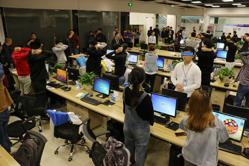 11時(shí)25分,記者離開隱蔽位置隨指揮部進(jìn)入現(xiàn)場(chǎng)。11時(shí)30分,100余名便衣民警分多路將抓捕現(xiàn)場(chǎng)團(tuán)團(tuán)圍住。隨著指揮員一聲令下,便衣民警們一擁而上,一舉將這個(gè)騙子公司老巢徹底搗毀。