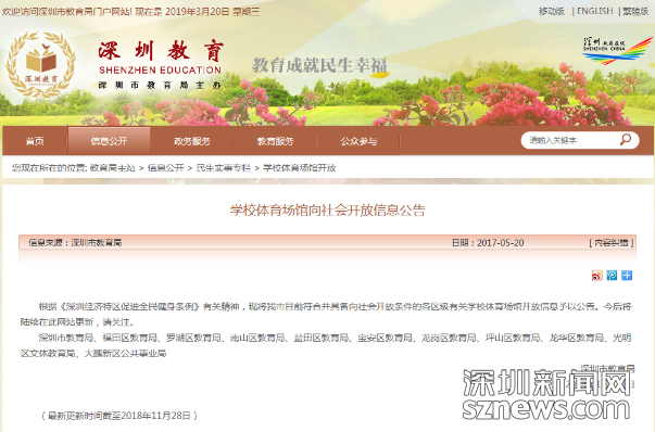 深圳市教育局關(guān)于學校體育館向社會開放的信息公告