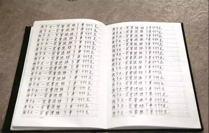 原來,楊某所在的部門員工都沒有底薪,全靠做單提成,做成一個999元的單,可以得到450元提成,可是他來了快一個月了還一直都沒有做成過一單,已經(jīng)成了執(zhí)念,所以就在筆記本上反復寫了這句話激勵自己。