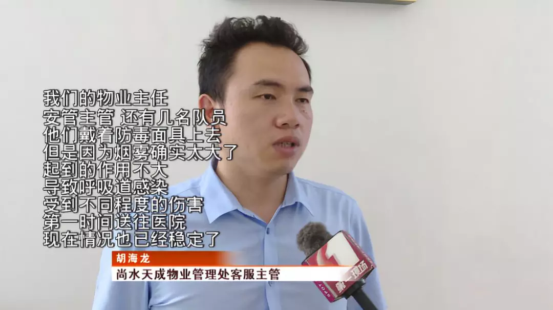 由于火勢(shì)增大,家具被燒著后產(chǎn)生大量黑煙,物業(yè)工作人員通知該樓層及樓上的住戶全部撤離。