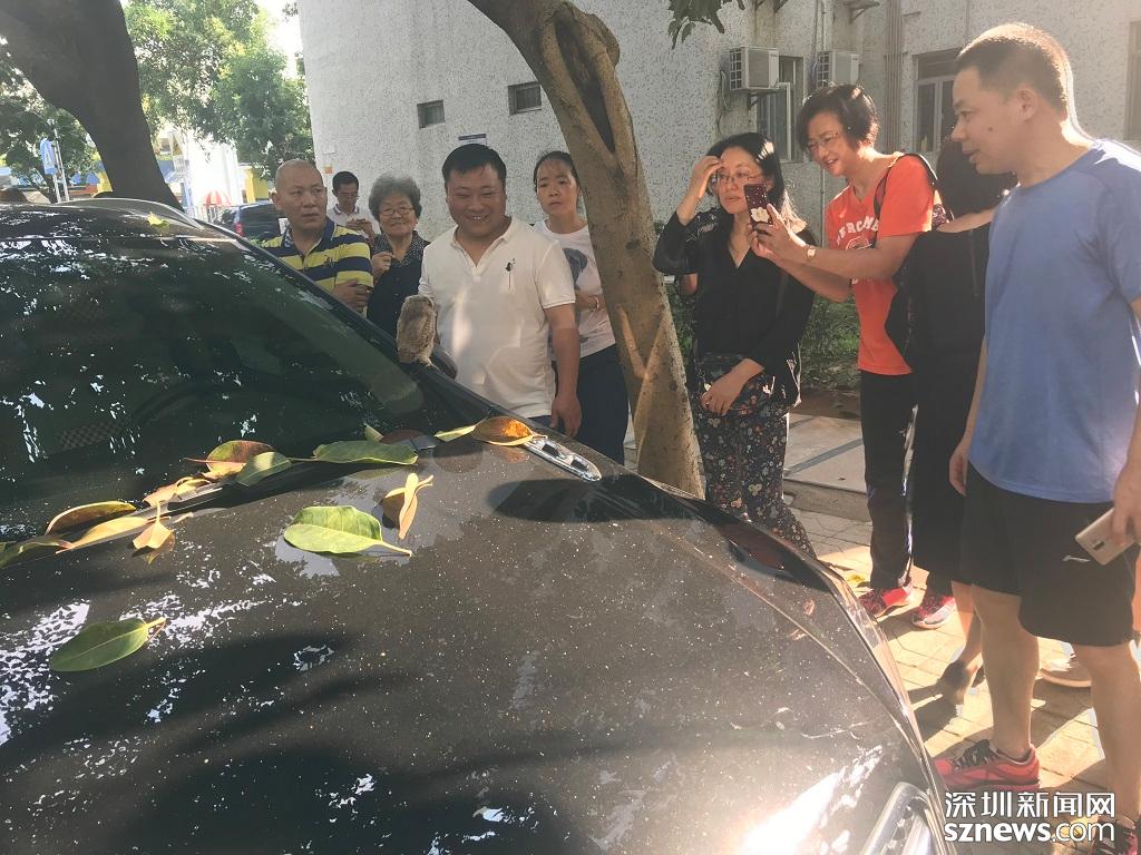 深圳新聞網(wǎng)2019年4月25日訊(記者 鄭曉鵬)今日早上8點多,一只小貓頭鷹停留在蓮花北村小區(qū)一輛小汽車上,路過的市民紛紛圍觀拍照。