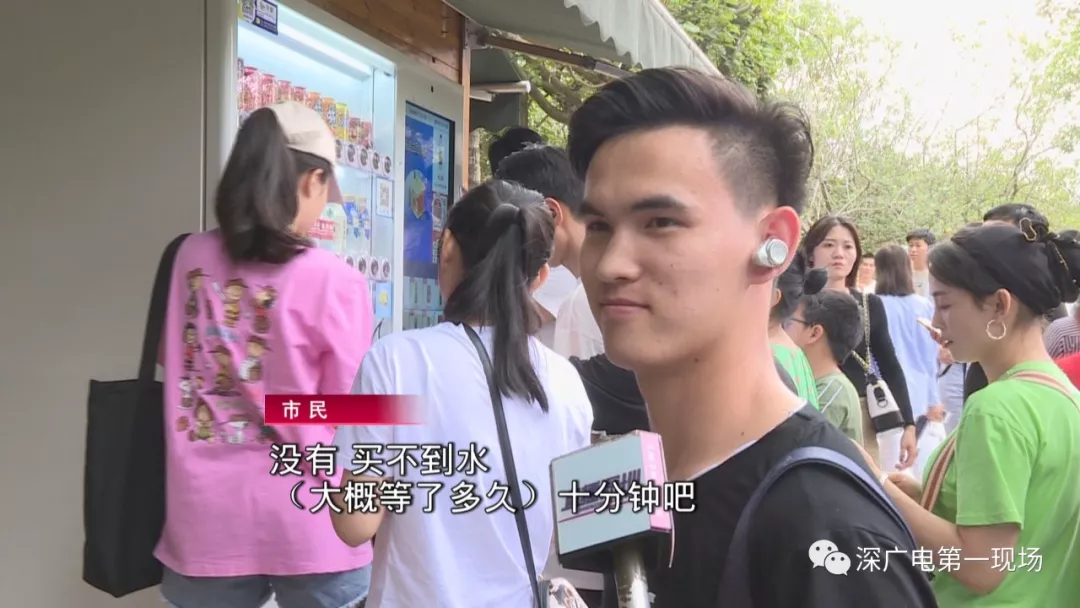 五一假期第一天,就有不少的市民朋友報料說,深圳灣公園人流爆棚,到處都是人擠人。下午5點,記者來到園區(qū)內(nèi)的自動售賣機(jī)旁,發(fā)現(xiàn)已經(jīng)擠滿了人,不少人正在排隊買水。
