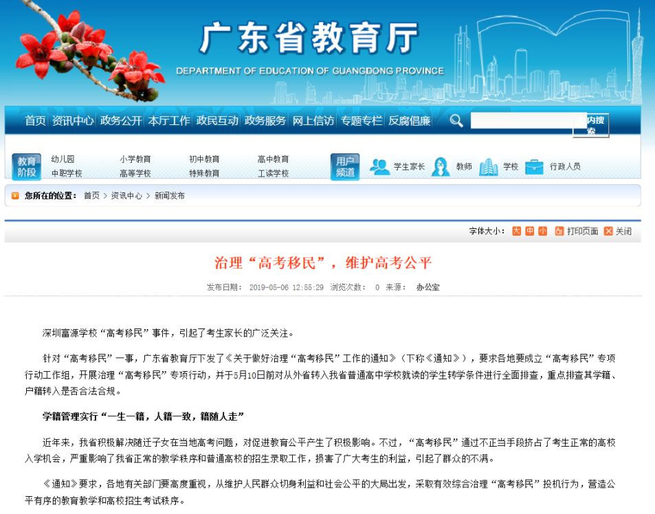 與以往高考移民的個案不同的是,此次廣東深圳富源學校的高考移民,有明顯的學校主導推動的痕跡,可以說是“組團”高考移民。
