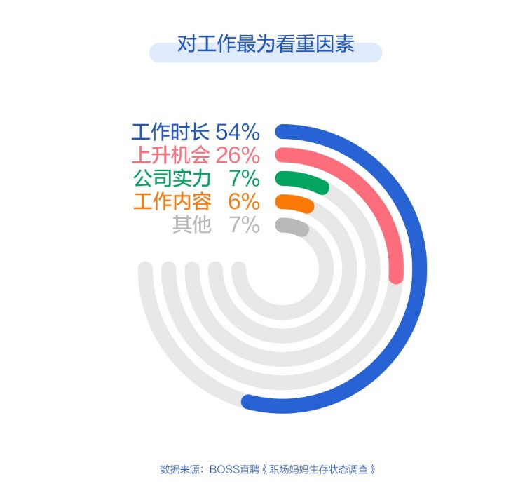 根據(jù) BOSS直聘發(fā)布的《2019職場媽媽生存現(xiàn)狀調(diào)查報(bào)告》,有65%的受訪職場媽媽認(rèn)為自己有潛在的抑郁傾向,逾八成媽媽對孩子感到愧疚,工作時(shí)長是職場媽媽在工作中最為看重的要素。一面是嗷嗷待哺的孩子,一面是苦心經(jīng)營的工作,事業(yè)與家庭的平衡或成職場媽媽焦慮的根源。