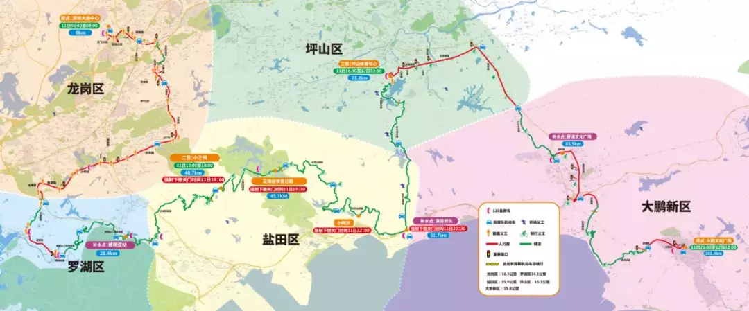 據(jù)悉,百里之行,始于龍崗大運(yùn)體育中心止于大鵬文化廣場(chǎng),途徑龍崗區(qū)、羅湖區(qū)、鹽田區(qū)、坪山區(qū)和大鵬新區(qū)。用一個(gè)周末的時(shí)間放松心情、認(rèn)識(shí)朋友用自己的腳印度量你所居住的這個(gè)城市。