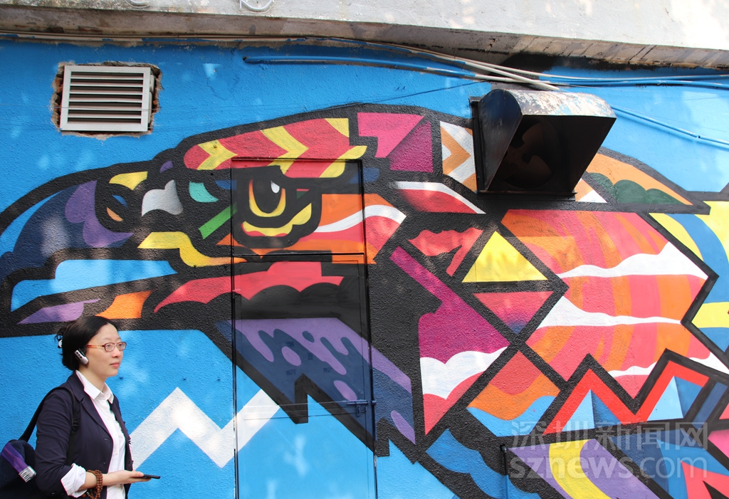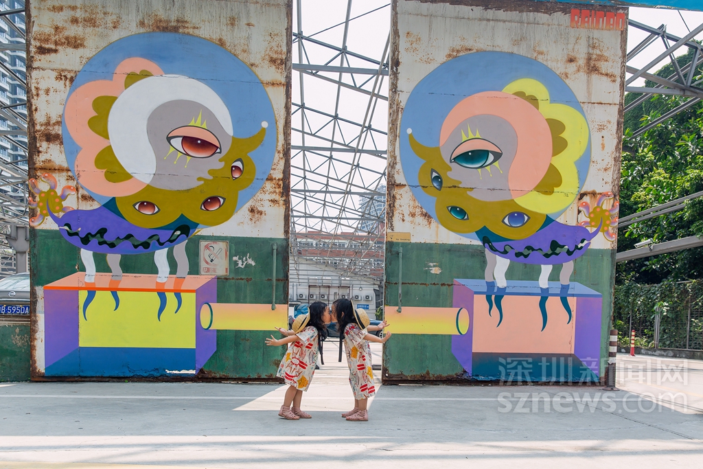 在城市公共空間中,涂鴉藝術不僅是一種重要的人文景觀,同時還能給人一種視覺享受,使單一的生活變得富有色彩。來自中國香港的全職藝術家彭怡擅長用涂鴉進行故事創(chuàng)作,帶來作品《雙觀》,以左右對稱相望的停車場守護神的形象感染車主與行人,傳達平穩(wěn)冷靜的力量。