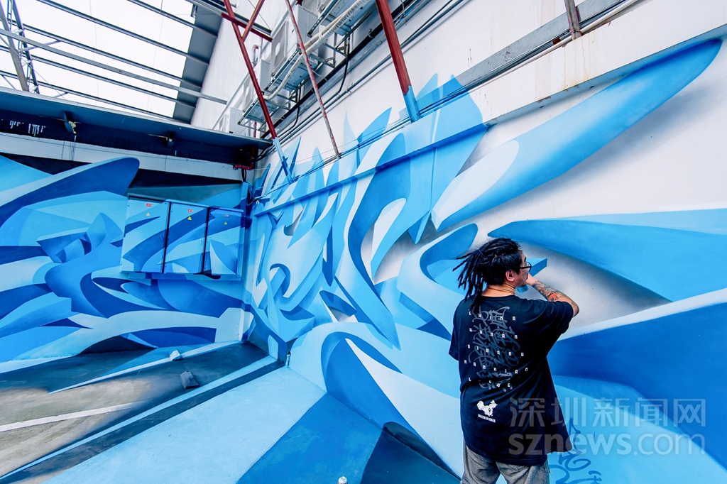 曾昭昶正在創(chuàng)作他的立體文字涂鴉作品《內&外》(主辦方供圖)