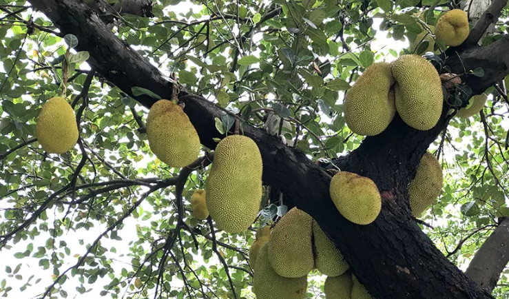 ⑨日前,有居民反映稱,蛇口公園北路靠近蛇口體育中心一側(cè)幾百米的人行道上種植60余棵菠蘿蜜樹,樹上掛了不少果實,蔚為壯觀,儼然成為路上一景。不過也擔心碩大的菠蘿蜜會掉落砸傷路人。