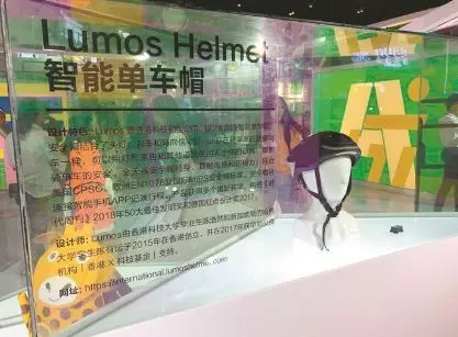 文博會(huì)現(xiàn)場(chǎng)展示的智能單車(chē)帽。晶報(bào)記者 吳欣/ 攝