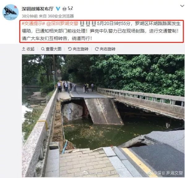 緊急提醒!羅湖環(huán)湖路路面發(fā)生塌陷,正封路進行交通管制