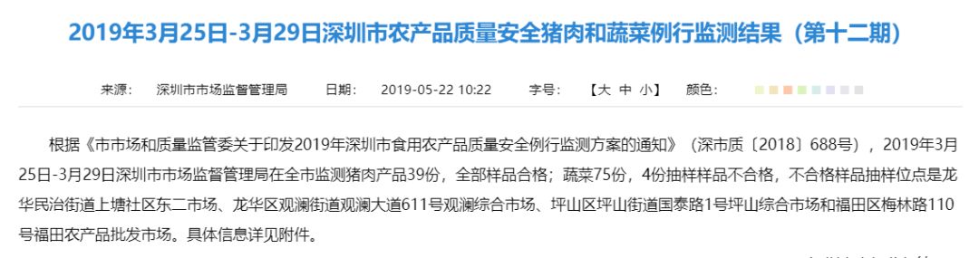 “2019食用農(nóng)產(chǎn)品抽檢第十二期”
